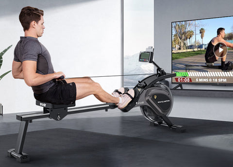 Row machines are low-impact equipment that requires little to no prior knowledge to begin using them. The intense workout you will get with rowing is so beneficial for both your heart and muscles. You can burn up to 520 calories per hour on a row machine which is comparable to running for an hour. Rowing also has great benefits by helping improve posture, increase flexibility in the spine, relieve back pain, strengthen your legs and build your arms all while improving cardiovascular fitness!