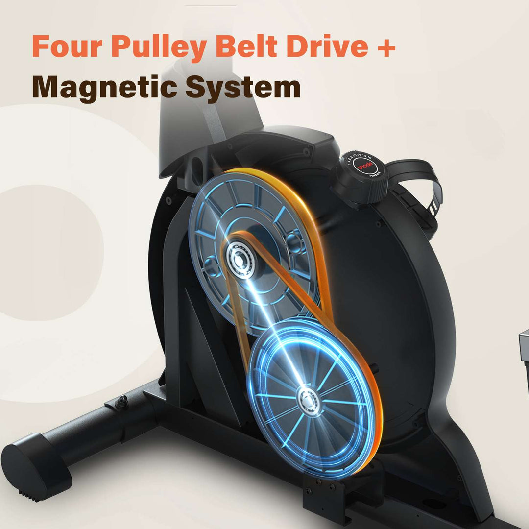 【Four Pulley Magnetic System】The SNODE RB10 Recumbent Bike features a quiet and smooth ride thanks to its advanced magnetic resistance system. The magnetic resistance provides a smooth and consistent workout experience, eliminating the noise and vibrations associated with traditional exercise bikes. The bike is also equipped with wheels for easy transportation and storage.
