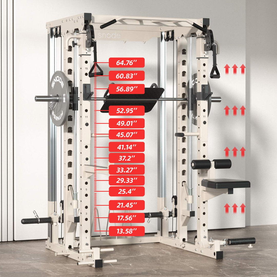 The ALL10 PLUS has 17 adjustable positions for the pulley system and 14 adjustable positions for the Smith system. This way, all members of your family can find the right setup for their height and various exercises.