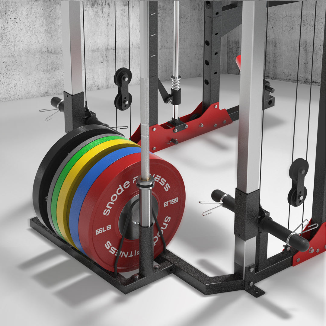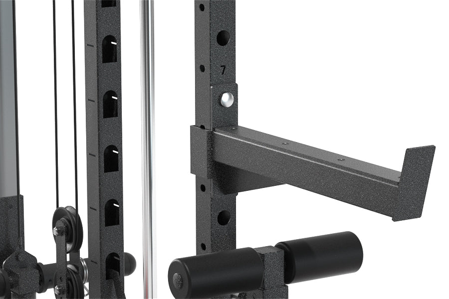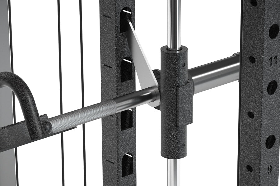The ALL10 PLUS Smith Machine with Cable Crossover System is made of heavy-duty 2”x2” steel uprights. This machineis designed for maximum versatility and safety. It features 14 adjustable positions to suit most users, providing a perfect fit for a variety of exercises. An integrated spring-loaded safety stopper on the base ensures safety during exercise, reducing vibrations and giving you peace of mind while enjoying smooth, uninterrupted vertical motion.