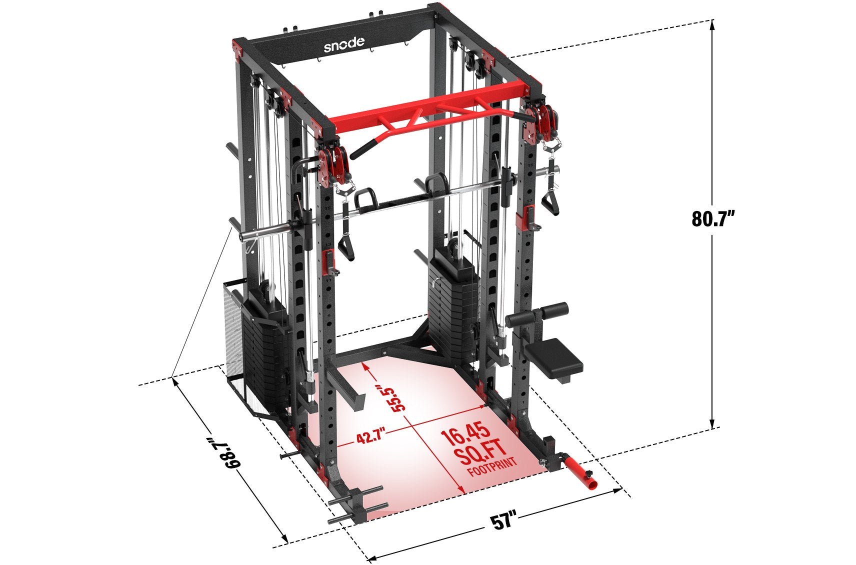 Exterior(Including Barbell Holder): 57'' (W) x 68.7'' (D) x 80.7'' (H)