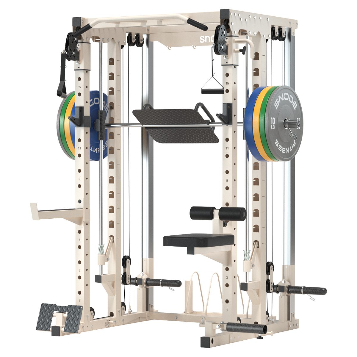The Smith Machine and the power rack cater to different needs within a gym setting. The Smith Machine features a barbell fixed on a vertical track, limiting movement to a set path, which is ideal for beginners or those rehabilitating injuries by reducing the need to balance the weight, thereby minimizing injury risk. Conversely, the power rack offers greater versatility with its adjustable safety catches and compatibility with free weights, allowing for a broader range of exercises. This setup enhances muscle stabilization, balance, and coordination, making it better suited for more experienced lifters who seek a comprehensive workout.