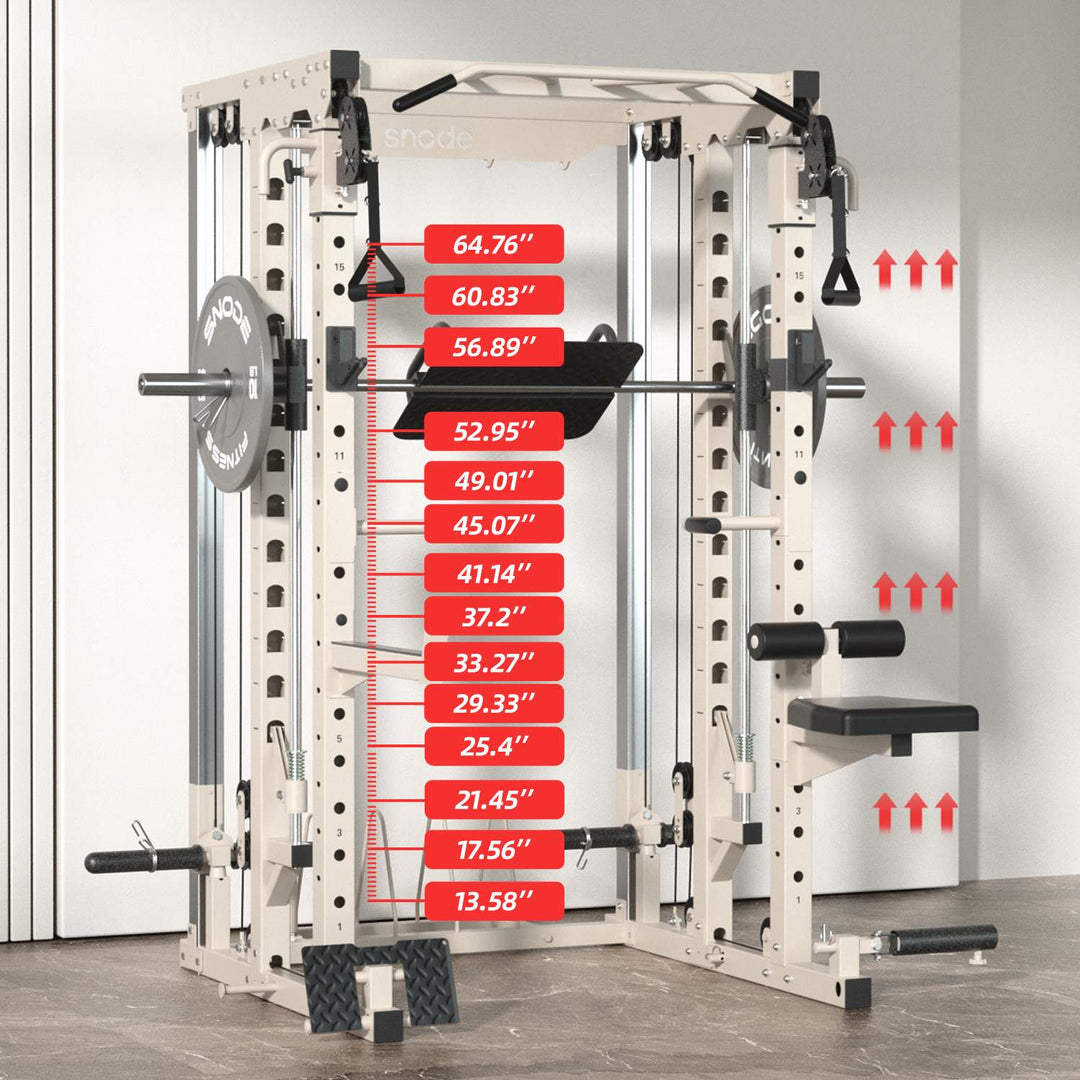 The ALL10 PLUS has 17 adjustable positions for the pulley system and 14 adjustable positions for the Smith system. This way, all members of your family can find the right setup for their height and various exercises.