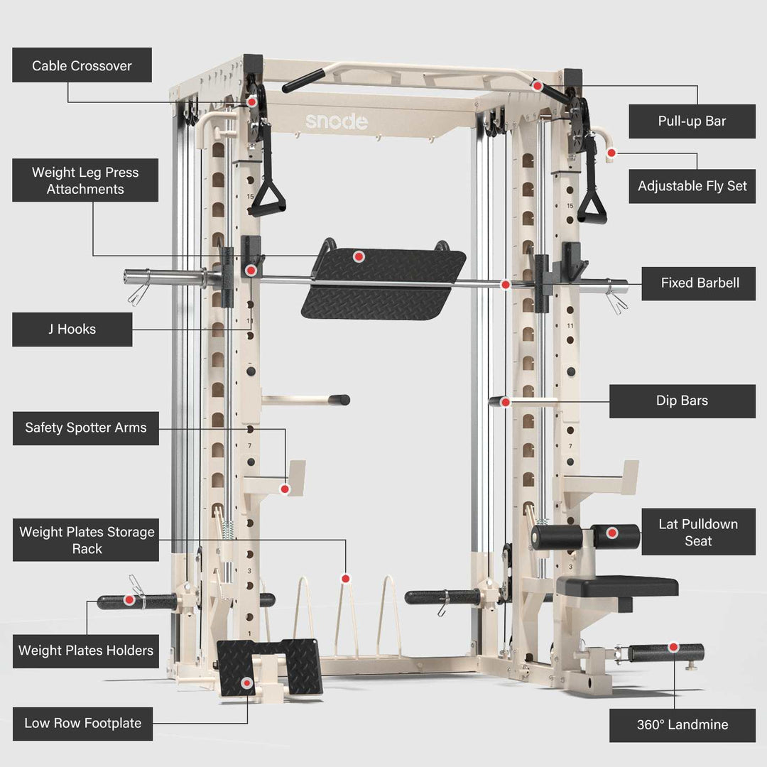 Snode ALL10 Pro Functional trainer includes all the attachments shown in the image, allowing you to craft your ideal home gym.