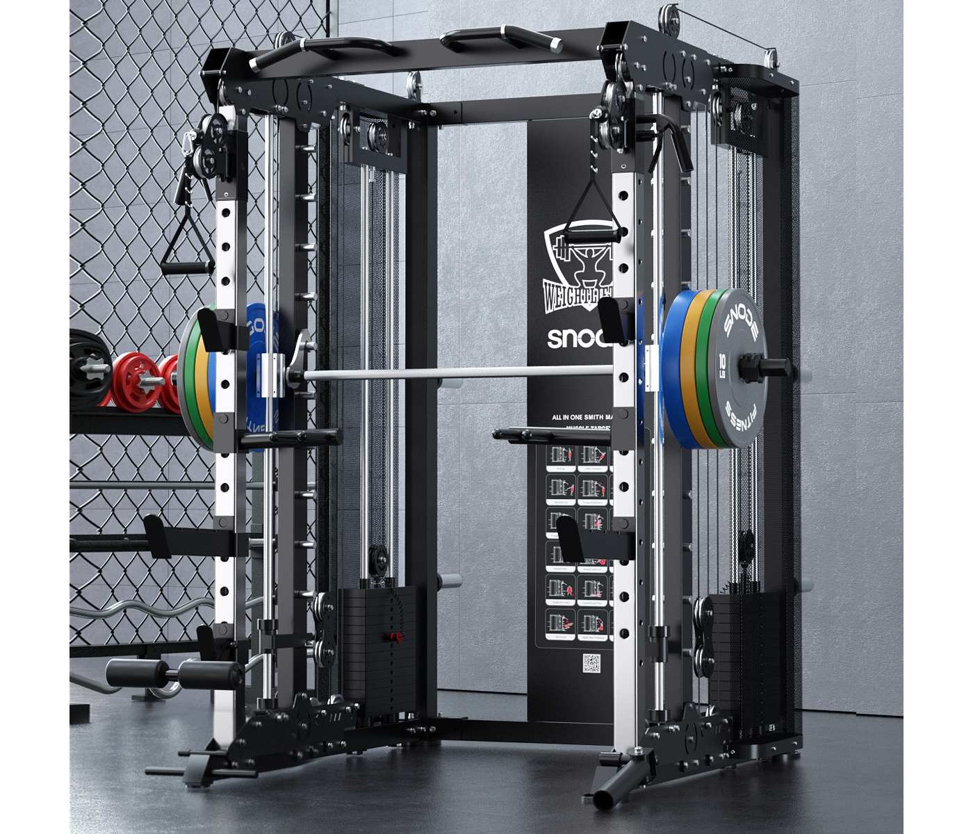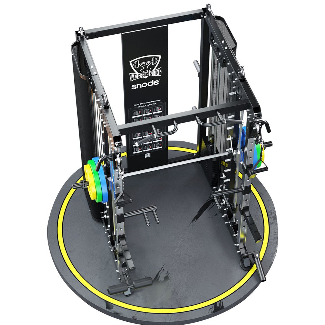 Take the Snode Smith Machine All-In-One Functional Trainer. To properly fit it in your home gym, ensure you have a space of at least 12 feet by 12 feet. This space accounts for the equipment's dimensions (78.7 inches long by 76.4 inches wide and 87.8 inches high) and provides adequate clearance around all sides for safe use and accessibility. This setup will allow you to fully utilize all its features comfortably and safely.