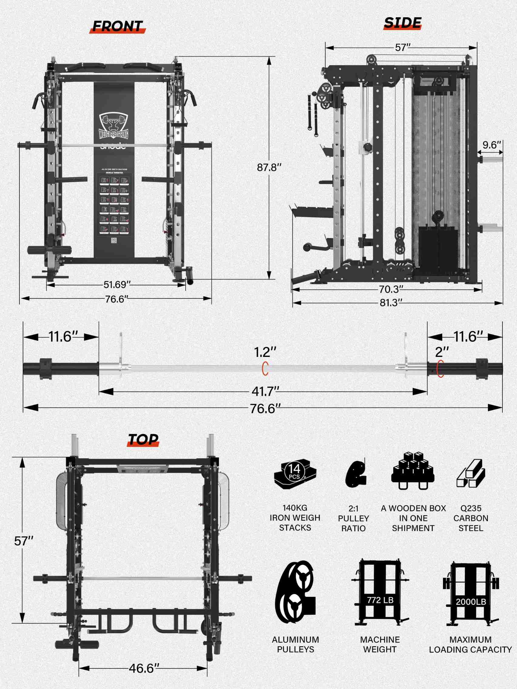 This All in One Machine pays a lot attention on details. The Anti-Gravity Smith Barbell allows you to track your actual training weight more accurately. The wider length of 76.6'' gives you more space to the accuracy of your workout posture.